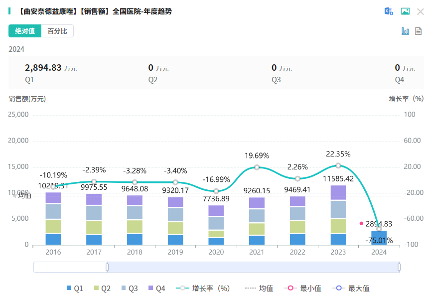 本次集采涉及曲安奈德益康唑乳膏剂抗感染品种,据药融云数据库显示,曲安奈德益康唑相关剂型品种在2023年全国院内市场的销售额超1亿元,同比增长达22.35%。