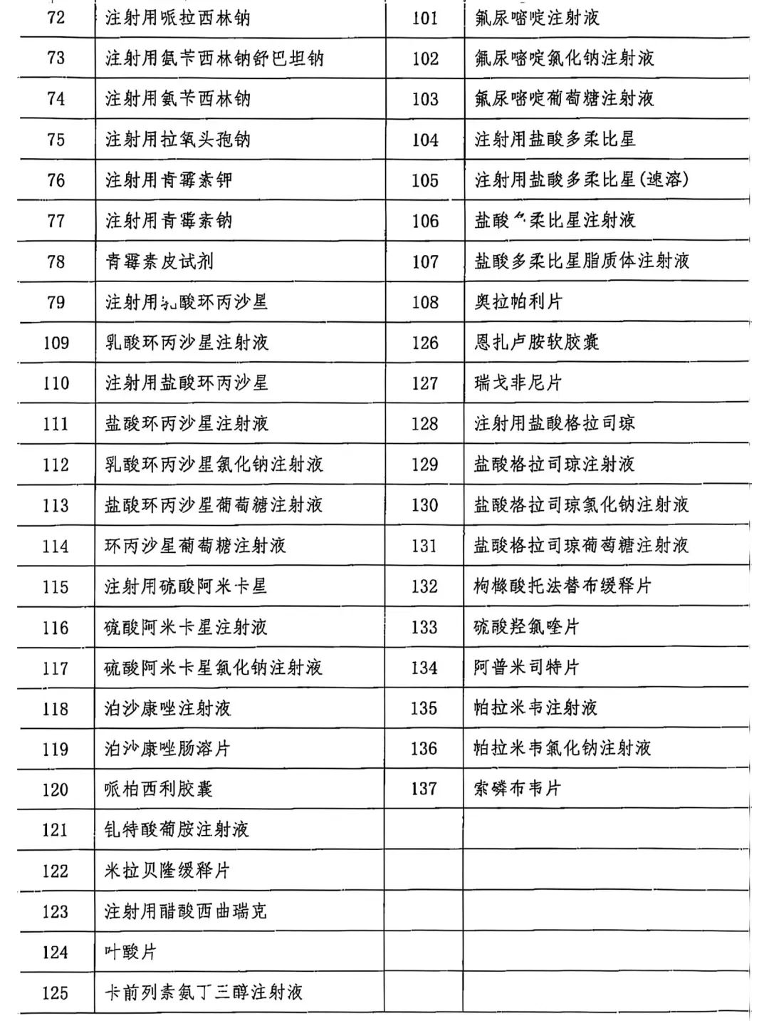 137个需要反馈采购交易明细的品种目录