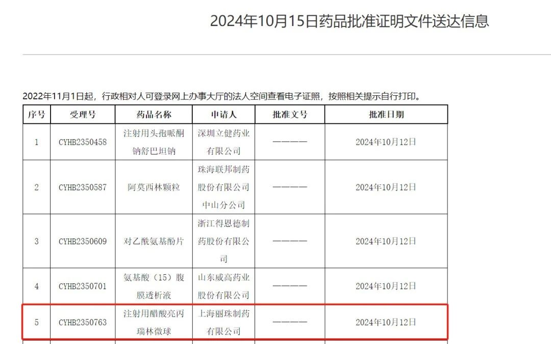10月15日,上海丽珠的亮丙瑞林微球一致性评价通过,是该品种首个过一致性评价的产品,亮丙瑞林微球医院全终端市场高达50亿。