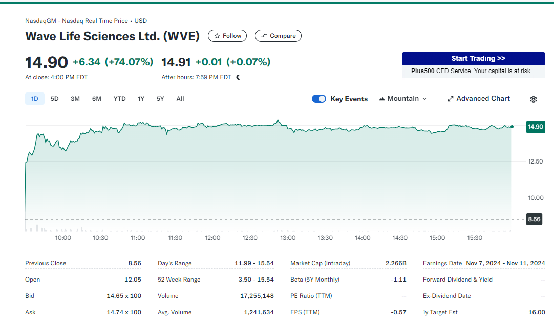 2024年10月16日,Wave Life Sciences宣布其RNA编辑疗法WVE-006在治疗α-1 抗胰蛋白酶缺乏症 (AATD) 的1b/2a期 RestorAATion-2研究中获得了积极的机制证明数据。受此消息影响,公司股价大涨74%。