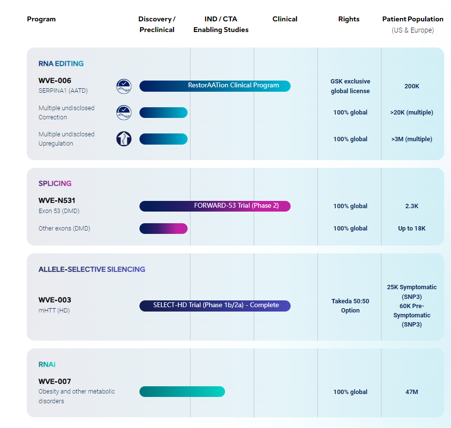 GSK拥有WVE-006的全球独家许可。Wave完成RestorAATion-2研究后,最多有资格获得5.25亿美元的里程碑付款以及净销售额的分级特许权使用费。