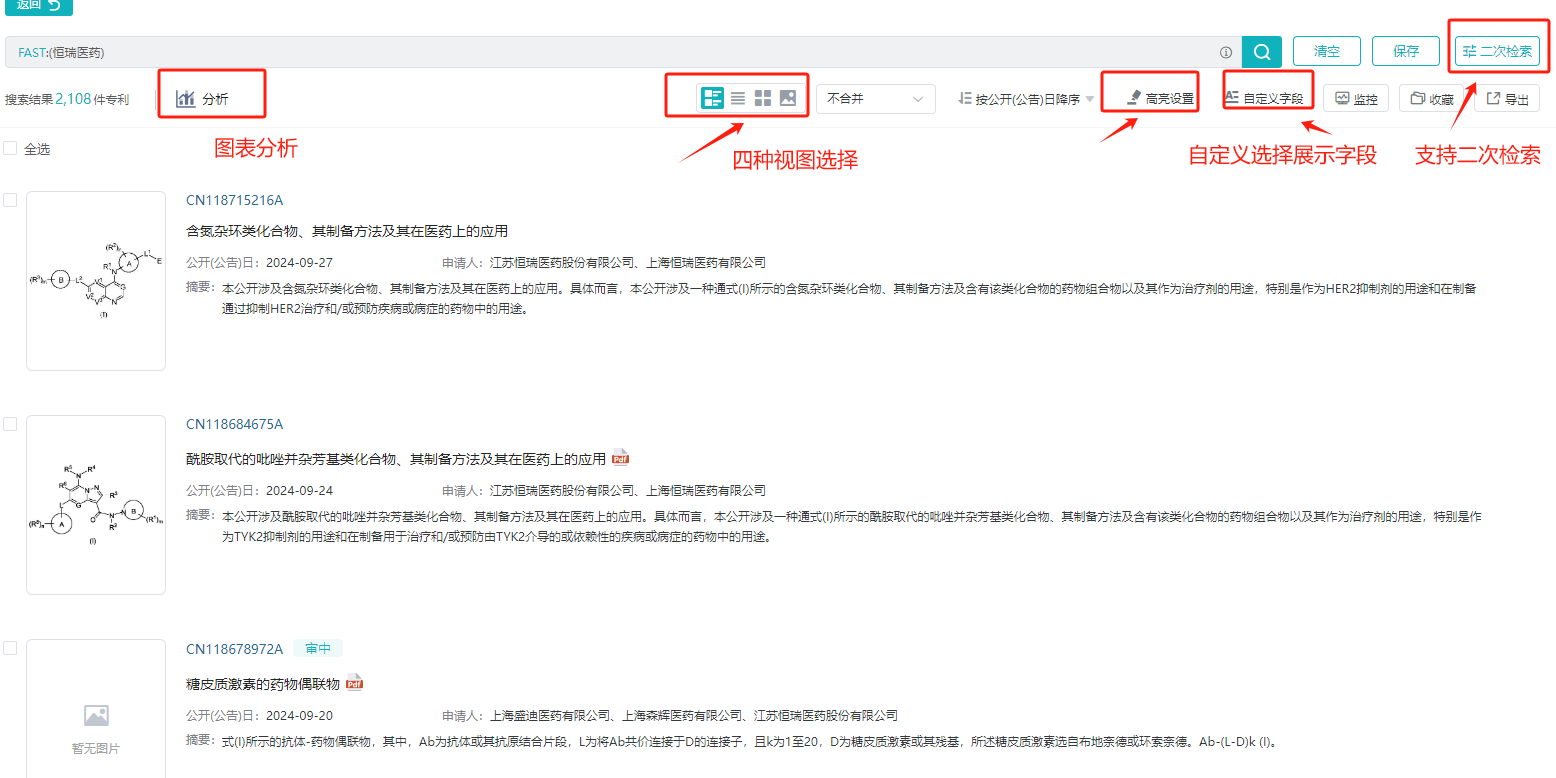 3. 专利检索结果页:清晰直观,功能丰富,高效便捷