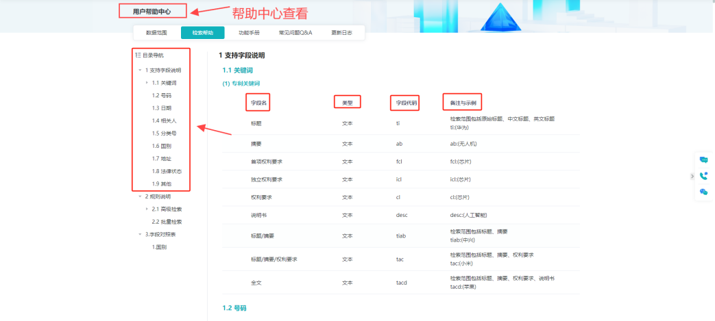 帮助中心可查看所有检索字段: