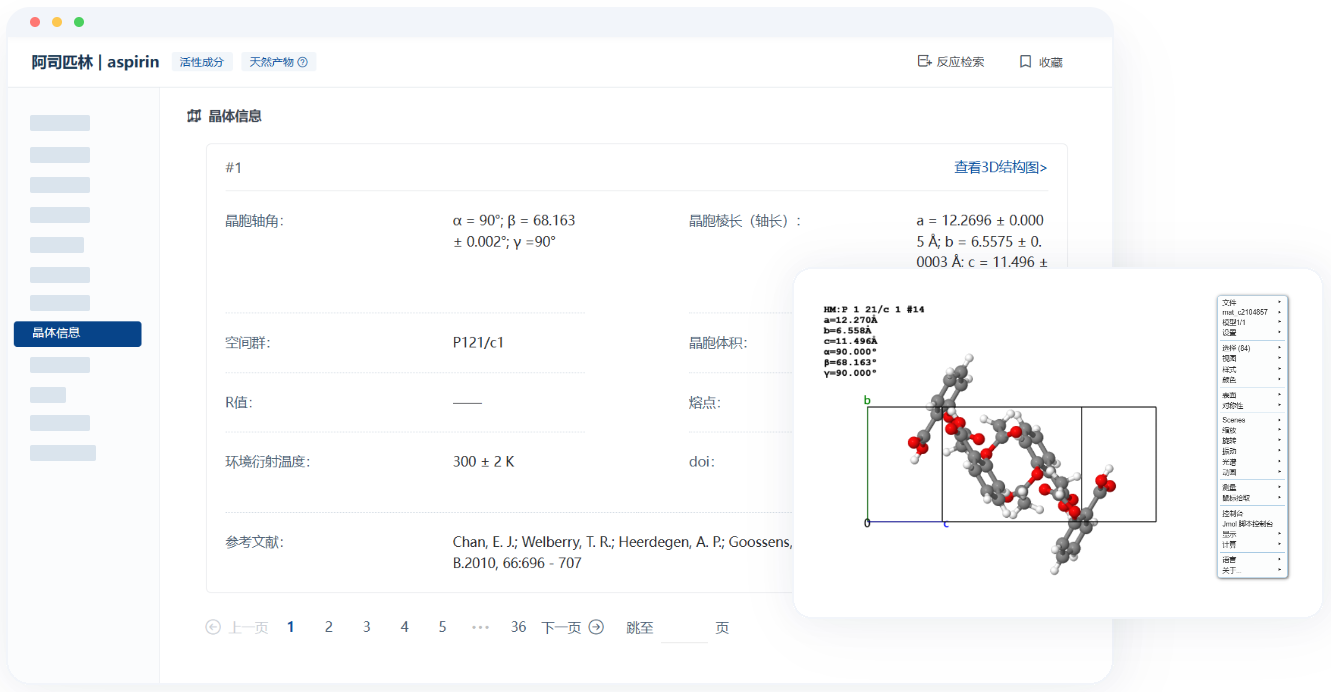 摩熵化学拥有100万条晶体信息,可查看晶体晶胞参数及参考文献。支持查看晶体3D结构,可在线编辑,调整各种参数后导出数据。该库功能丰富,3D结构可视化,利于您深入了解物质空间结构。