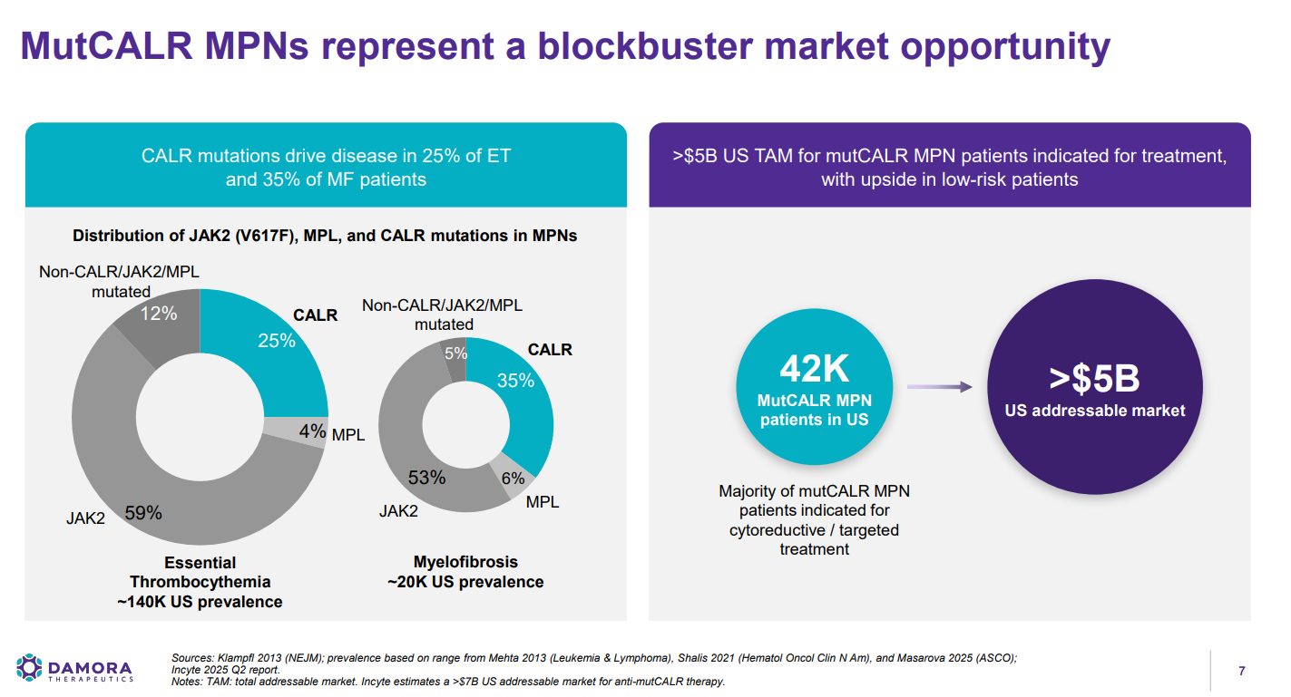 Damora致力于开发抗体疗法管线,旨在革新由突变型钙网蛋白(mutCALR)驱动的骨髓增殖性肿瘤(MPNs),包括原发性血小板增多症(ET)和骨髓纤维化(MF)的治疗。