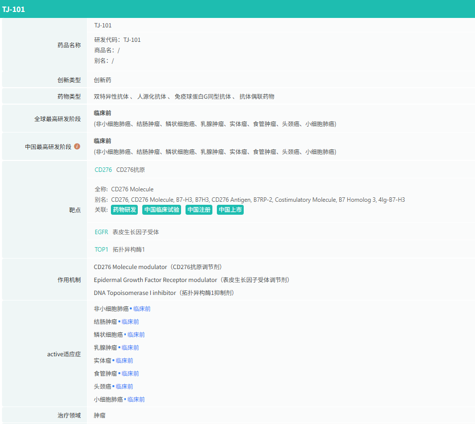依托自主研发平台,拓济医药针对不同适应症构建出多款差异化双靶点组合与载荷策略,目前已布局近十条创新管线。其中,TJ101是一款靶向EGFR/B7-H3的双抗ADC,正在中美两地同步开展临床入组工作。临床前研究显示,TJ101在安全性与疗效方面均优于同类产品,处于国际领先水平。