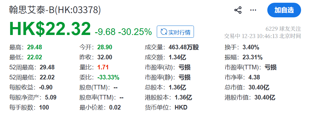 2025年12月23日,来自湖北武汉的翰思艾泰生物科技(武汉)股份有限公司 Hanx Biopharmaceuticals (Wuhan) Co., Ltd.(以下简称“翰思艾泰”)在港交所正式上市。大跌30%。