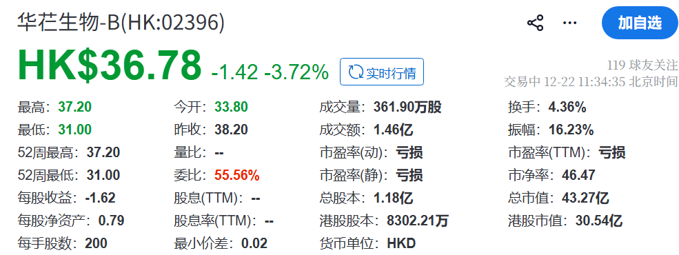 华芢生物,2021年5月完成Pre-A轮融资,估值8.05亿元;2021年10月完成A轮融资,估值达20.21亿元;2023年5月完成B轮3亿元融资,每股成本为33元,融资估值为33亿元。