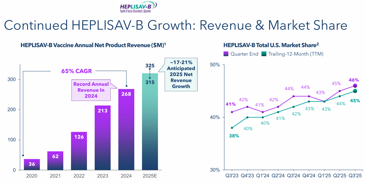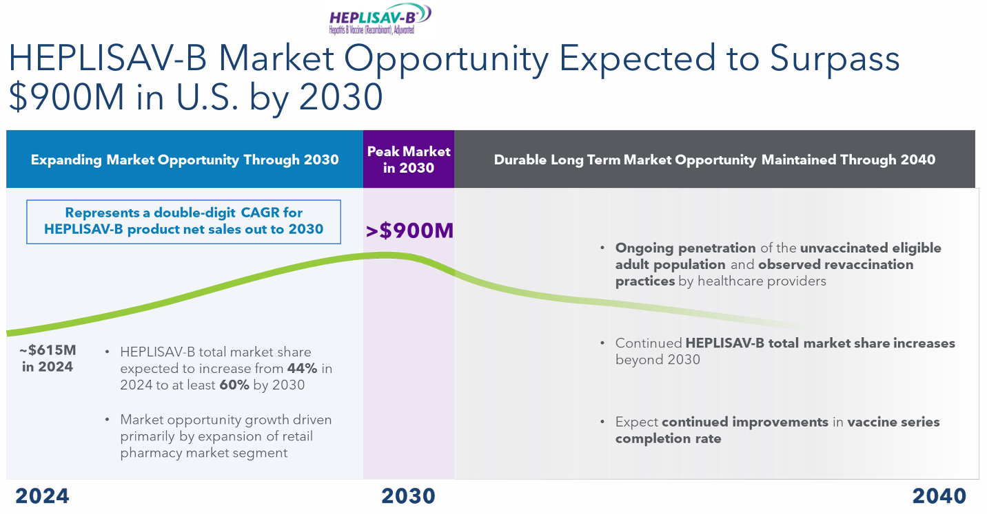 Dynavax的成人乙型肝炎疫苗 HEPLISAV-B 目前在美国上市,其区别在于一个月内的两剂方案,这比其他六个月内分三剂接种的乙型肝炎疫苗更快地实现了高水平的血清保护。