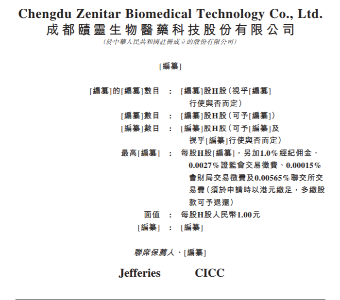近日,成都赜灵生物医药科技股份有限公司(以下简称:赜灵生物)向港交所主板递交上市申请,Jefferies、CICC为其联席保荐人。