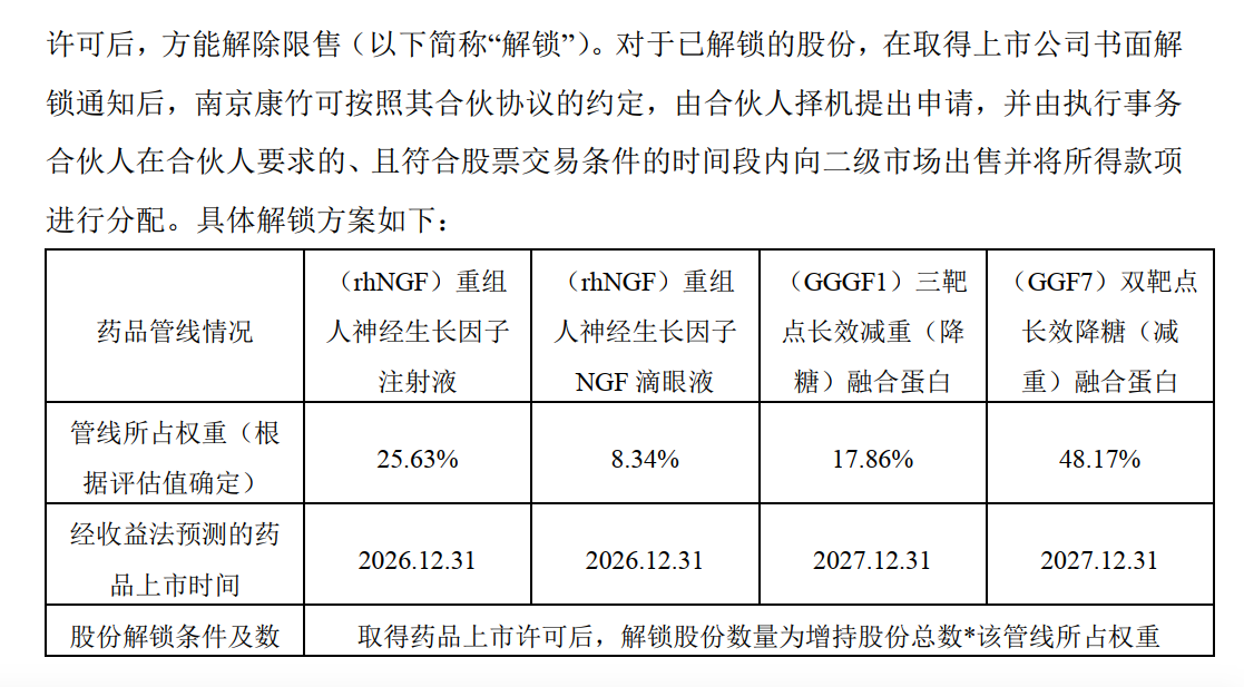 此外,若在经收益法预测的药品上市时间,或上市公司因药品临床研发及上市程序的特殊性而给予6-12 个月缓冲期后仍未获批上市,上市公司无需向康缘集团支付该管线对应的剩余股权转让价款。