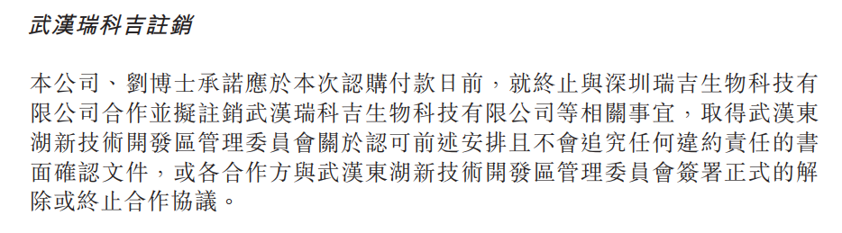 终止武汉瑞科吉运营(合资公司与深圳瑞吉生物联合成立):