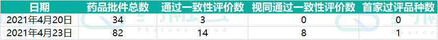 本周,国家药监局发布的两批药品批准证明文件待领取信息分别是4月20日和4月23日,其中包括多款通过一致性评价和视同通过一致性评价的药品批件信息。在本周通过的一致性药品中,包含1款药品为首仿,视同通过一致性评价,为江苏豪森药业的酒石酸伐尼克兰片。