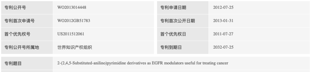 不过值得一提的是奥希替尼/AZD9291原研国内的化合物专利CN103702990将于2032年7月到期。