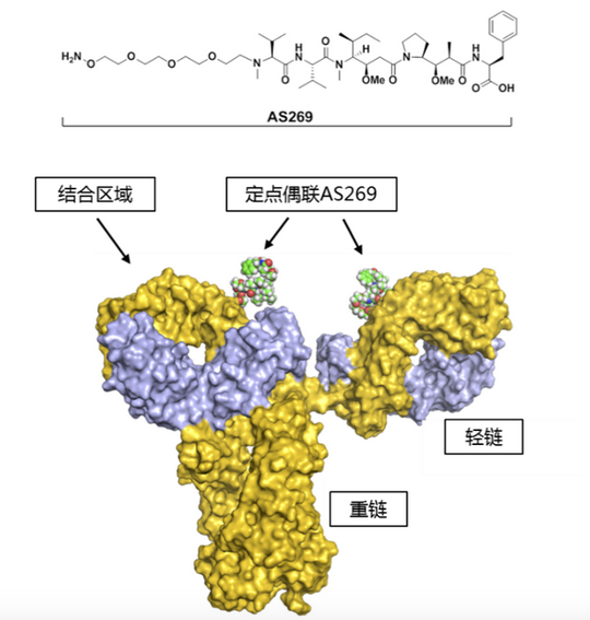 Ambrx 是一家临床阶段生物制药公司,最早成立于2003年,利用扩展的遗传编码技术平台发现并开发生物制剂。其中包括下一代抗体药物结合(ADCs)、双特异性、靶向免疫肿瘤疗法、调节免疫系统的新型细胞因子以及代谢和心血管疾病的长效治疗肽。Ambrx 正在推进一系列强大的临床和临床前计划,旨在优化多种治疗领域的疗效、安全性和易用性,包括其主要产品候选 ARX788(抗HER2单抗-AS269偶联药物,如下图)。Ambrx的核心技术-非天然氨基酸介导的定点偶联ADC技术,源自Scripps研究所Peter G Schultz教授。