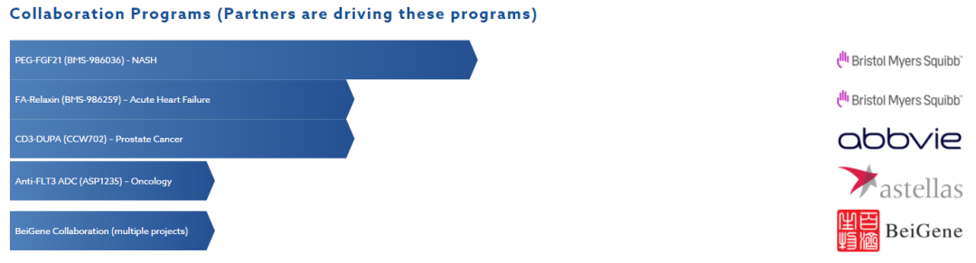 公司合作伙伴中,除几大外企外,另外有多家中国的生物制药公司:浙江医药(新码生物)、百济神州、中国生物制药等等。