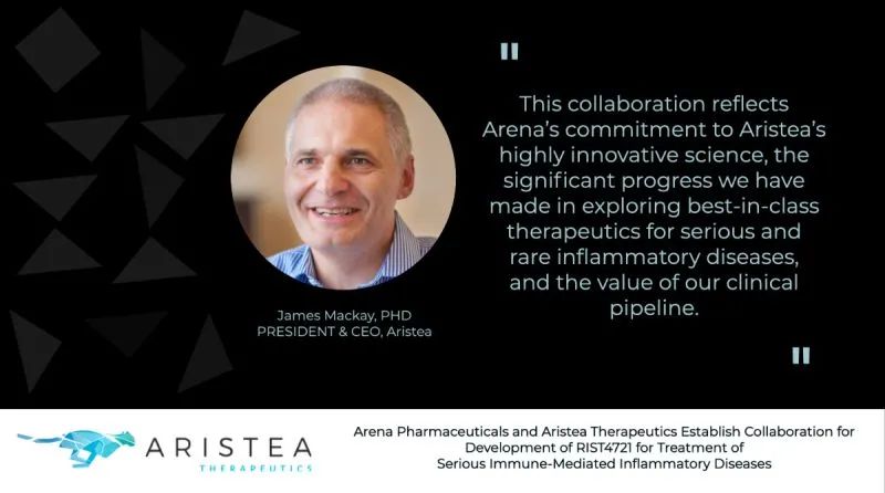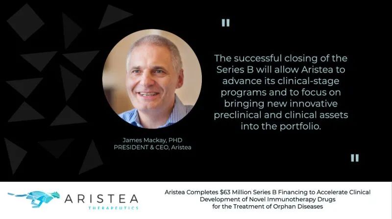 Aristea 总裁兼首席执行官 James M. Mackay 博士表示:“B 轮融资的成功完成将使 Aristea 推进其临床阶段项目,并专注于将新的创新临床前和临床资产引入投资组合. “通过利用和建立 RIST4721 先前的临床经验和强大的专利组合,我们降低了我们的目标适应症的风险,并利用这种免疫疗法的潜力来针对其他严重的炎症性疾病。我期待着继续推进我们的开创性尽快到达患者的临床计划。”