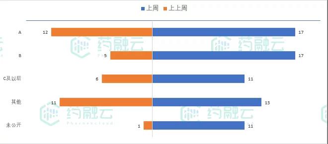 8月16日-8月22日全球范围内与医药相关的投融资事件共69笔,环比增加97%,C轮融资金额过半(81.8亿元)