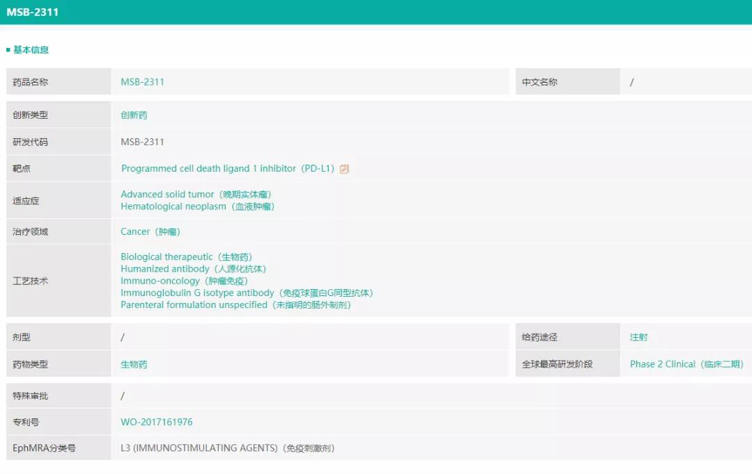 (创胜集团MSB-2311信息,来源于药融云数据库)