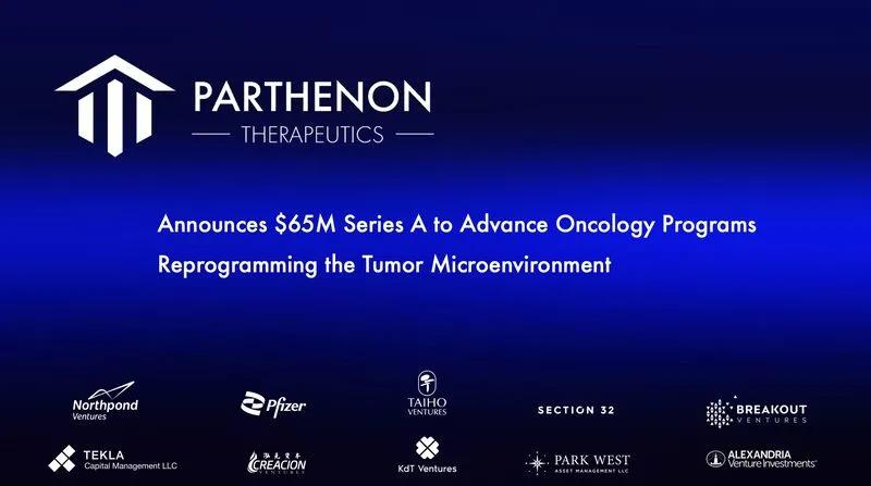 近日,马萨诸塞州剑桥市,Parthenon Therapeutics 发明了一类可重新编程肿瘤微环境的新型抗癌疗法,宣布获得由 Northpond Ventures、Pfizer Ventures和 Taiho Ventures 领投的 6500 万美元 A 轮融资。其他投资者包括 Section 32、Breakout Ventures、 Tekla Capital Management LLC、Creacion Ventures(泓元资本)、KdT Ventures、Park West Asset Management LLC 和 Alexandria Venture Investments 管理的基金。该公司计划利用这笔资金开发针对肿瘤免疫排斥的新疗法。