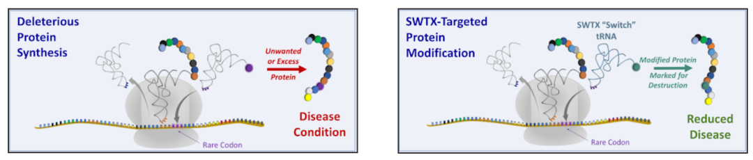 hC Bio 同时正在开发第二个基于 tRNA 的平台,称为 SWTX(“Switch”),以针对由错义突变引起的疾病。该技术旨在纠正导致疾病的蛋白质中的此类突变。