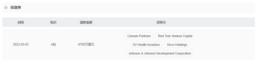 本轮融资由 Red Tree Venture Capital 和 Canaan Partners 共同牵头,包括强生创新 – JJDC, Inc. 的重大投资。其他投资者包括 Novo Holdings A/S 和 SV Health Investors。