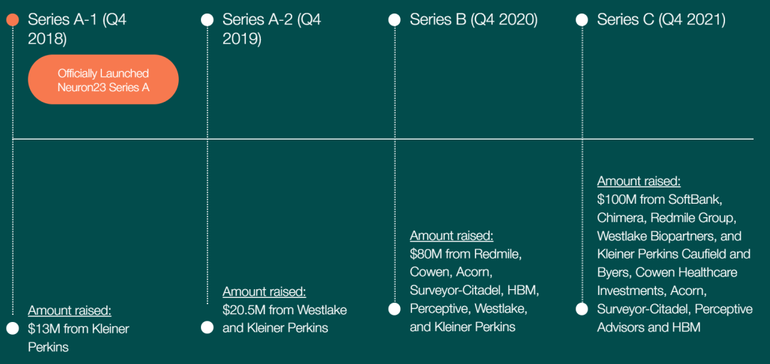 近日,据药融云数据库显示,加利福尼亚州南旧金山,Neuron23™ Inc. 是一家专注于为基因定义的神经和免疫疾病开发精准药物的早期生物技术公司,宣布已完成由软银愿景基金2牵头的 1 亿美元 C 轮融资,使公司迄今为止筹集的总融资额达到 2.135 亿美元。Neuron23 的 A 轮和 B 轮投资者——Westlake Village BioPartners、Kleiner Perkins、Redmile Group、Cowen Healthcare Investments、Acorn Bioventures、HBM Partners、Perceptive Advisors 和 Surveyor Capital也参与了 C 轮融资。