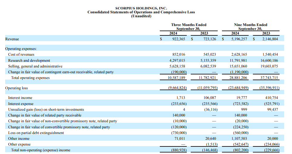 在其他近期新闻中,Scorpius Holdings已采取几项影响其财务和运营结构的战略举措。该公司已获得两笔不可转换的本票贷款,一笔价值100万美元,另一笔价值60万美元,年利率均为5.0%。这些在最近的SEC文件中详细说明的财务协议是Scorpius Holdings管理短期资金需求努力的一部分。