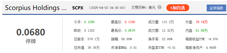 此外,该公司未能按要求在2025年4月15日截止日期前提交截至2024年12月31日财年的10-K表格。Scorpius Holdings表示,时间限制使其无法在不造成过度困难和费用的情况下提交报告。