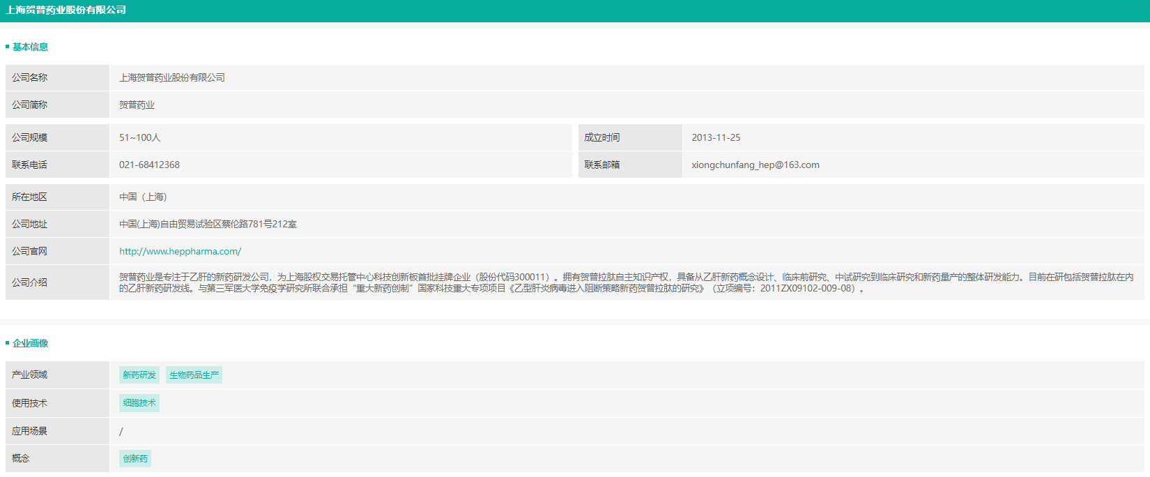 贺普药业公司基本信息