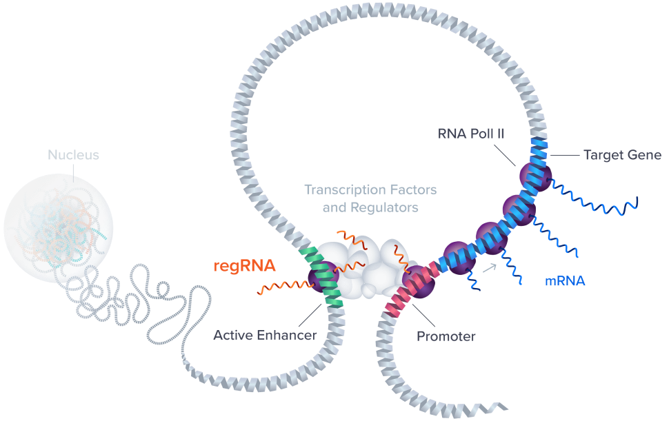 在细胞核中,基因及其调控元件被组织成保守的3DDNA结构,称为绝缘邻域,以控制基因表达。regRNA在这些循环中被独特地转录,并充当基因表达的变阻器。