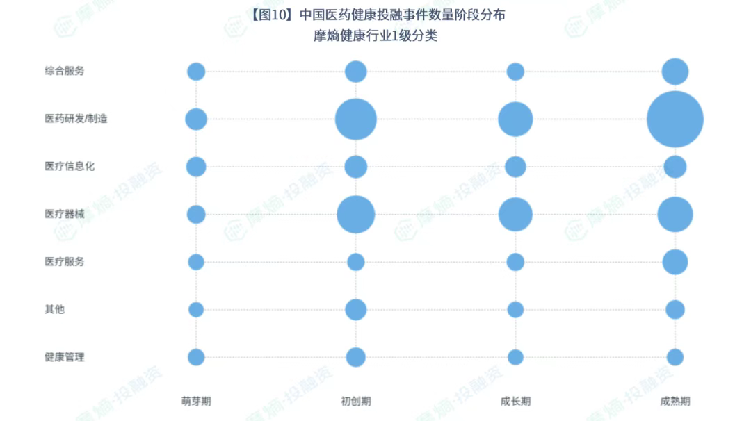 从摩熵投融资行业领域一级分类看,本月获投事件最多的领域赛道分别为医药研发/制造、医疗器械、医疗信息化,本月融资事件发生数量分别为85、53、21。