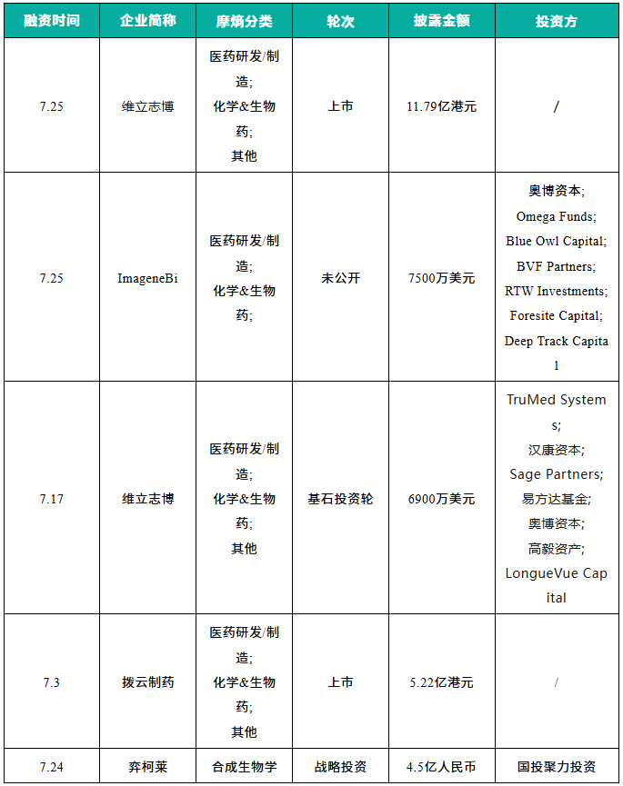 以上内容均来自{ 2025年7月医药健康投融资&交易月报 },如需查看或下载完整版报告,可点击!