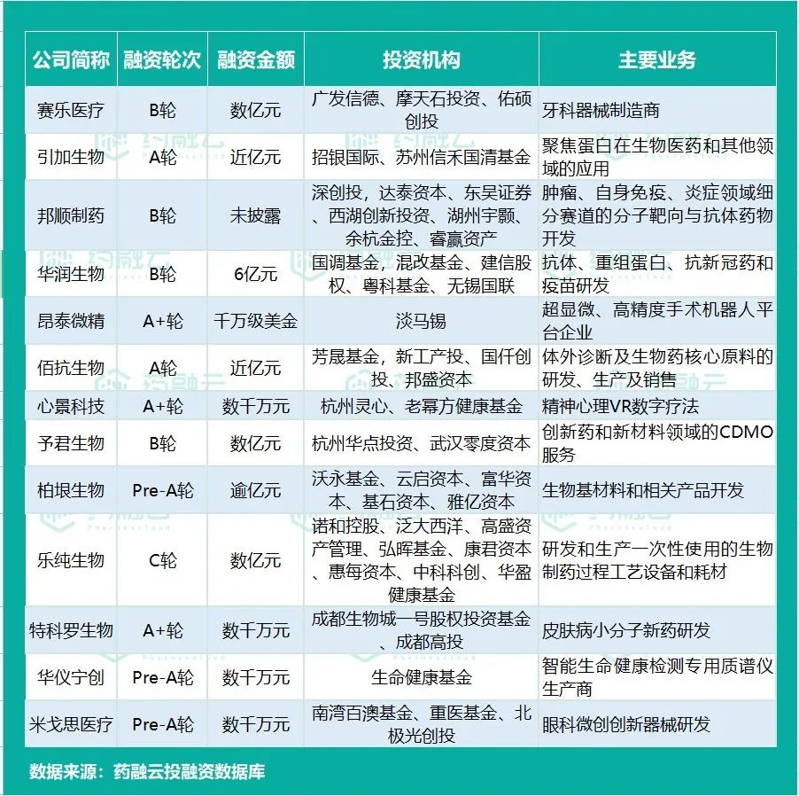 本周国内生物医药投融资概况