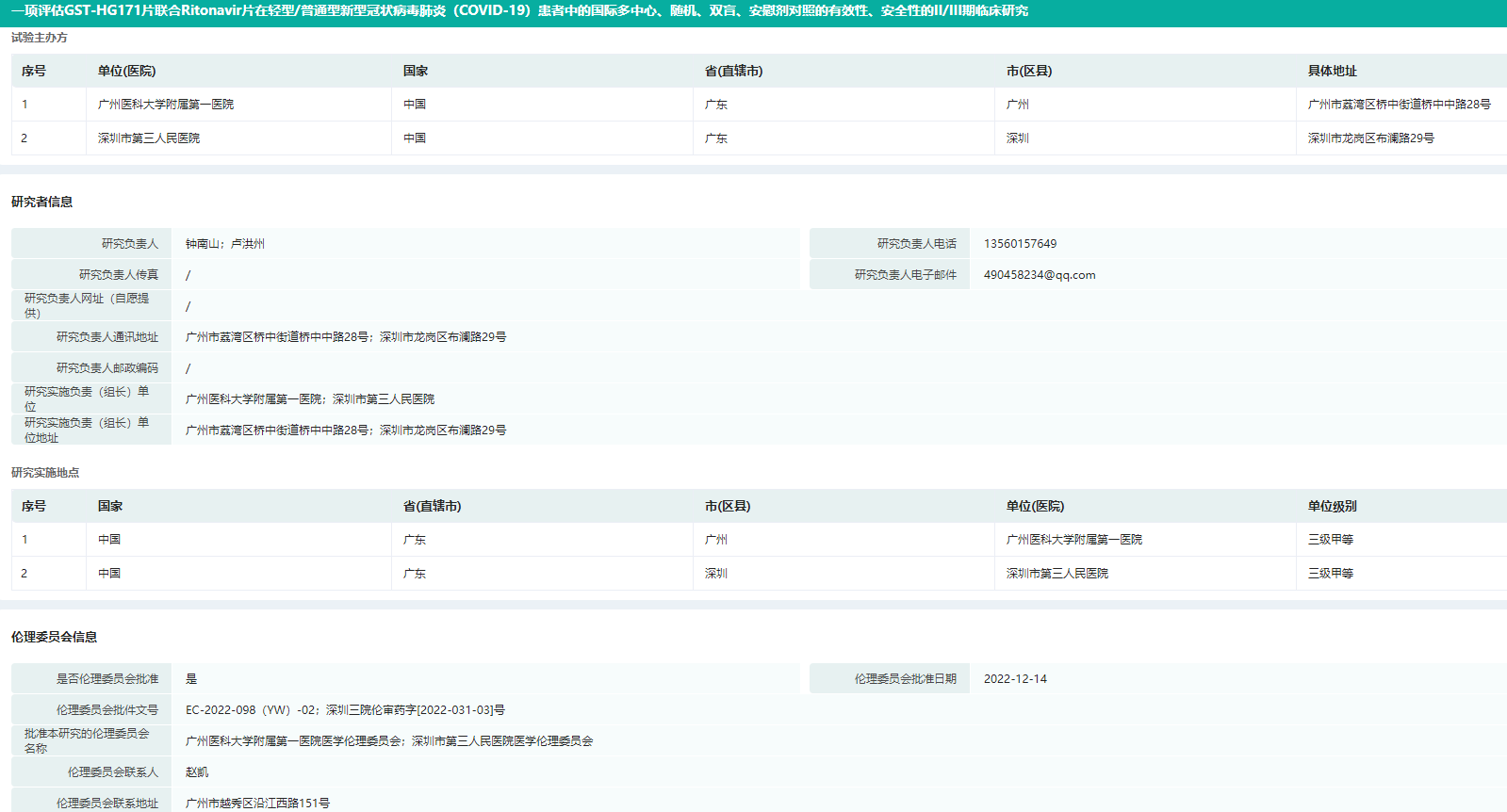 据药融云中国临床试验数据库显示,福建广生中霖生物科技有限公司(简称“广生中霖”)的口服小分子广谱抗新型冠状病毒3CL蛋白酶抑制剂一类创新药物GST-HG171于近日启动一项由研究者发起的研究(IIT研究)。其中,研究发起单位广州医科大学附属第一医院正在进行伦理审查流程,深圳市第三人民医院已获得伦理委员会批准,同意开展该研究。