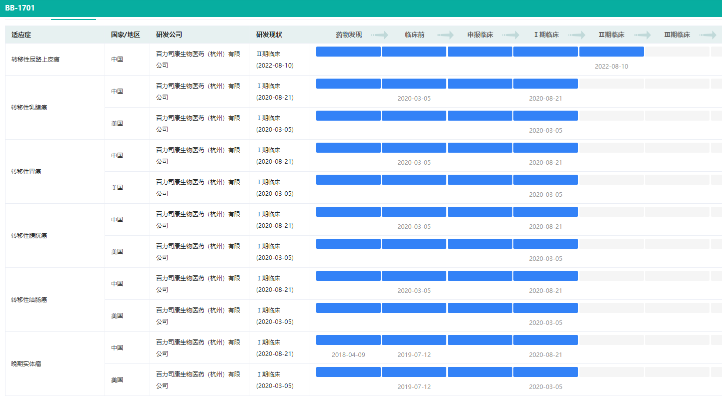 BB-1701不同适应症研发状态