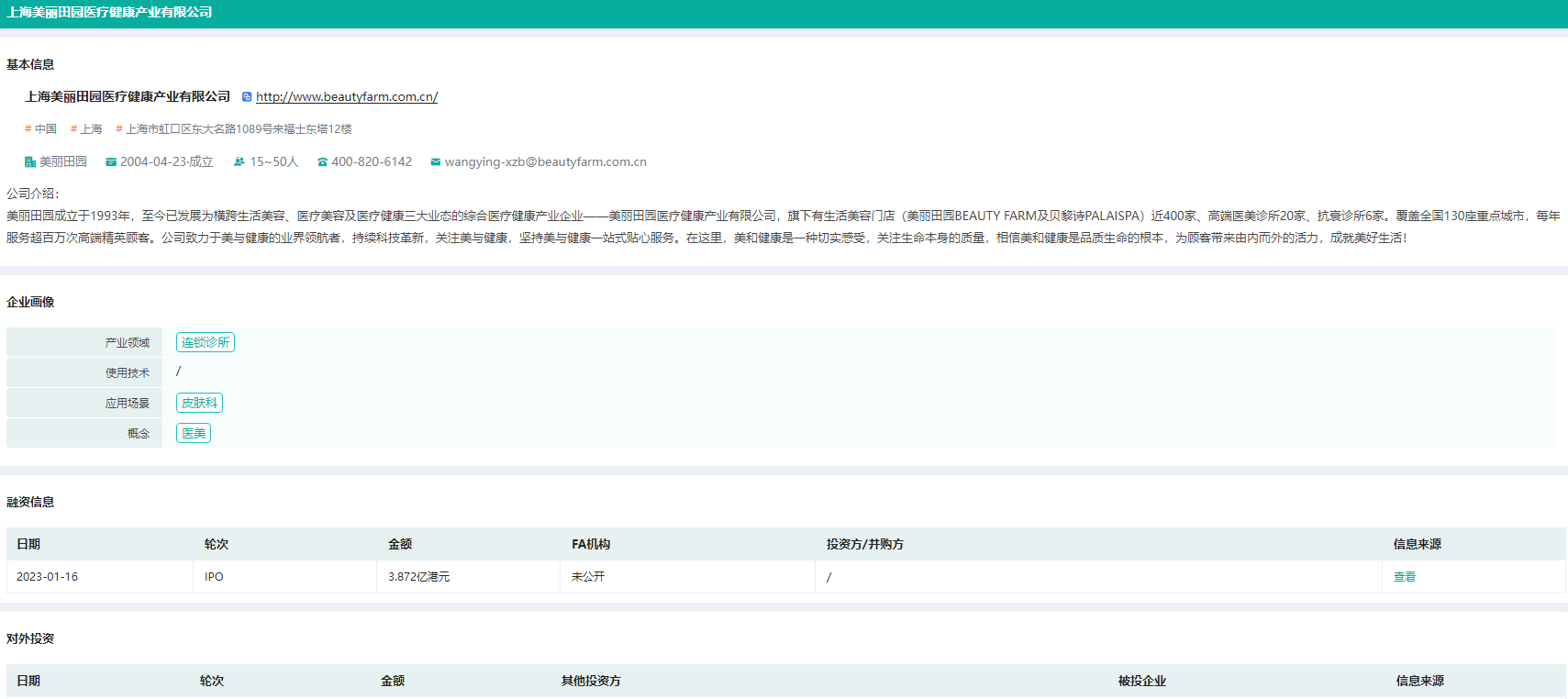四、上海美丽田园医疗健康产业有限公司