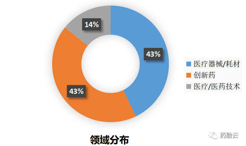 据药融云数据库统计,本周(2月20日-2月26日)全国医药健康行业共发生7起生物医药投融资事件。具体领域包括:医疗器械/耗材(3起,43%),创新药(3起,43%),医疗/医药技术(1起,14%)。