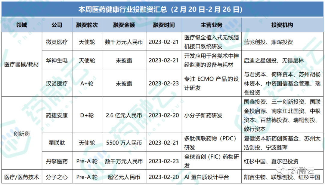 2月20日-2月26日生物医药投融资情况