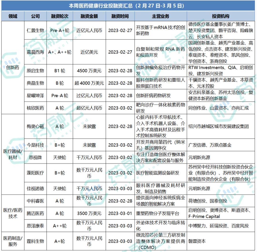一、本周生物医药投融资概况