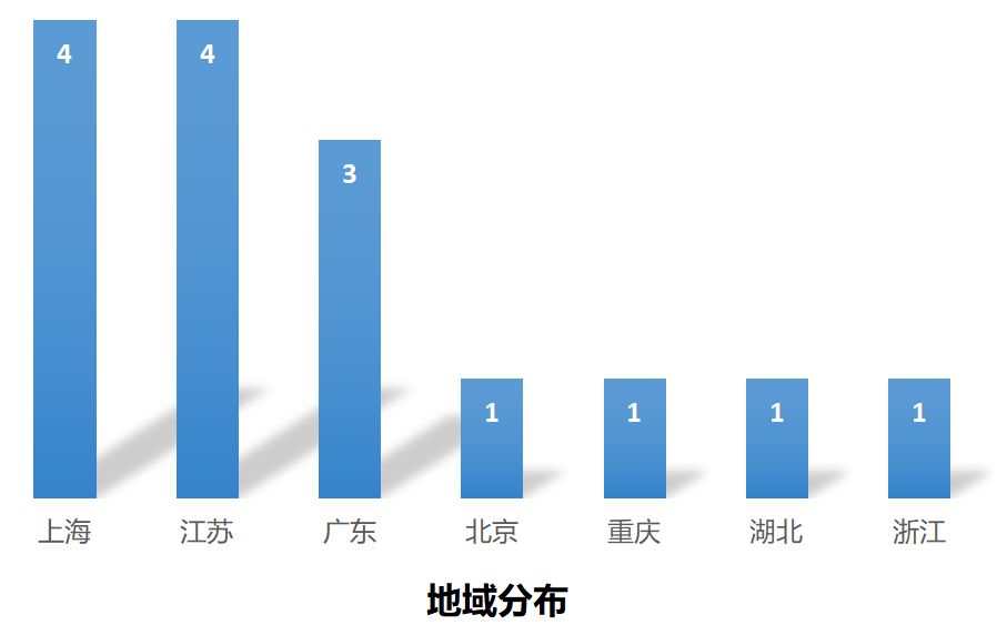 本周生物医药投融资事件主要分布在上海和江苏,分别有4起。其次分布在广东,有3起。