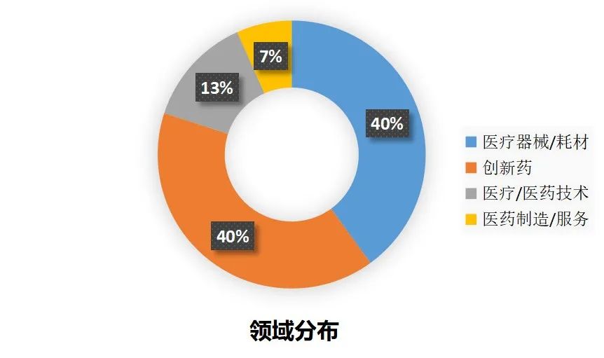 本周生物医药投融资在医疗器械/耗材和创新药领域较为活跃,分别发生6起。随后为医疗/医药技术领域,有2起。