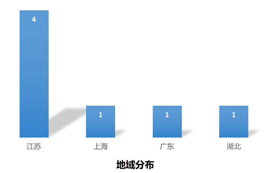 本周生物医药投融资事件主要分布在江苏,有4起。其次分布在上海、广东和湖北,分别有1起。
