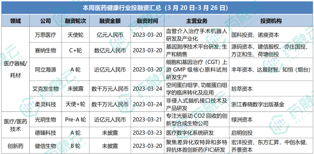 本周生物医药投融资轮次主要集中在A轮(含Pre-A轮、A轮),共3起。