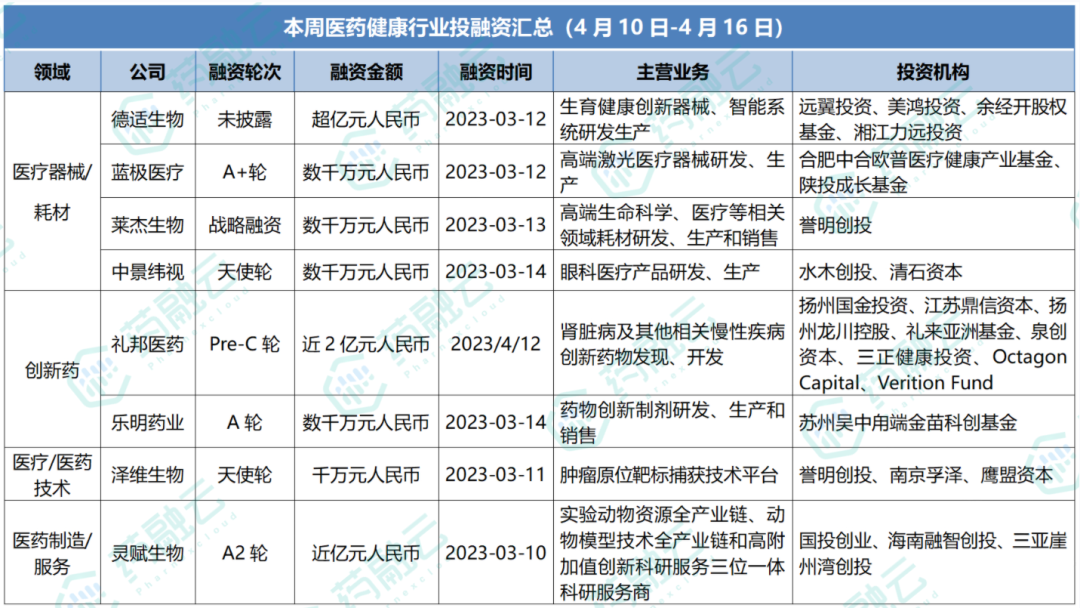 1.礼邦医药完成近2亿元Pre-C轮融资与8亿元银团授信