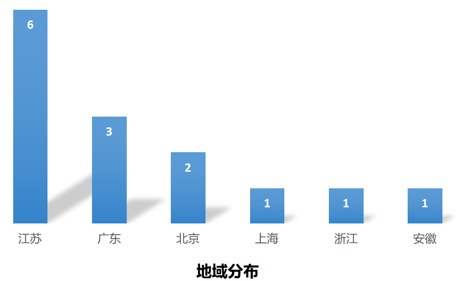 本周生物医药投融资事件主要分布在江苏,共发生6起。随后分布在广东,有3起。