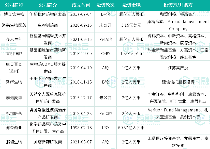 4月20日,海森生物宣布完成了3.15亿美元的融资。这是一家创新型生物医药企业,由康桥资本、合肥产投集团与合肥市肥东县共同投资组建。该轮医药投融资由康桥资本和阿布扎比主权财富基金穆巴达拉投资公司共同领投,其它机构投资者跟投。募集资金将用于未来的收购和创新产品管线的业务发展。