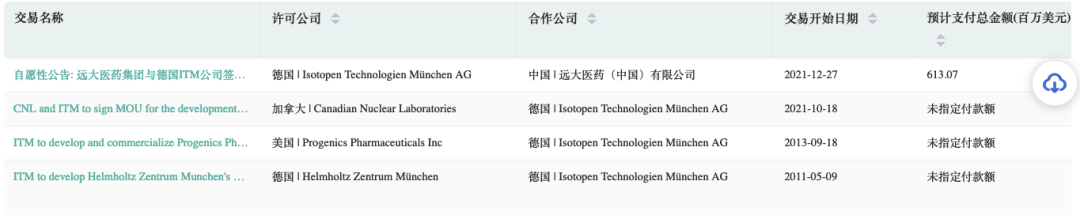 2022年2月,远大医药(00512.HK)公告,以2500万欧元(约合1.79亿元人民币)认购ITM公司的新股份,相当于其扩大后股本的1.31%。