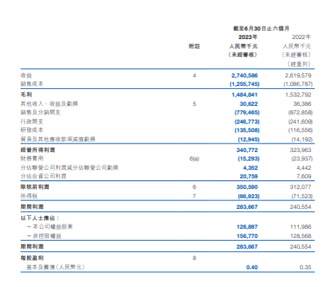 据2023年半年报显示,远大医药上半年实现营收59.89亿港元,同比增长14.9%;归母净利润10.29亿港元,同比去年增长44.9%。如果不计算对Telix投资的公允价值变动收益2.29亿港元和一次性行政罚款约3.23亿港元,上半年归母净利润约11.24亿港元,同比增长3.1%。研发工作及项目支出4.97亿港元,同比下降68.9%;分销费用为16.38亿港元,同比增长19.3%,主要系营收大幅增长所致。