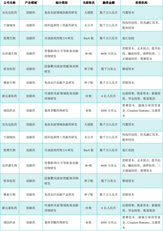 1. 江苏新元素医药——完成6轮融资,总融资超12亿元